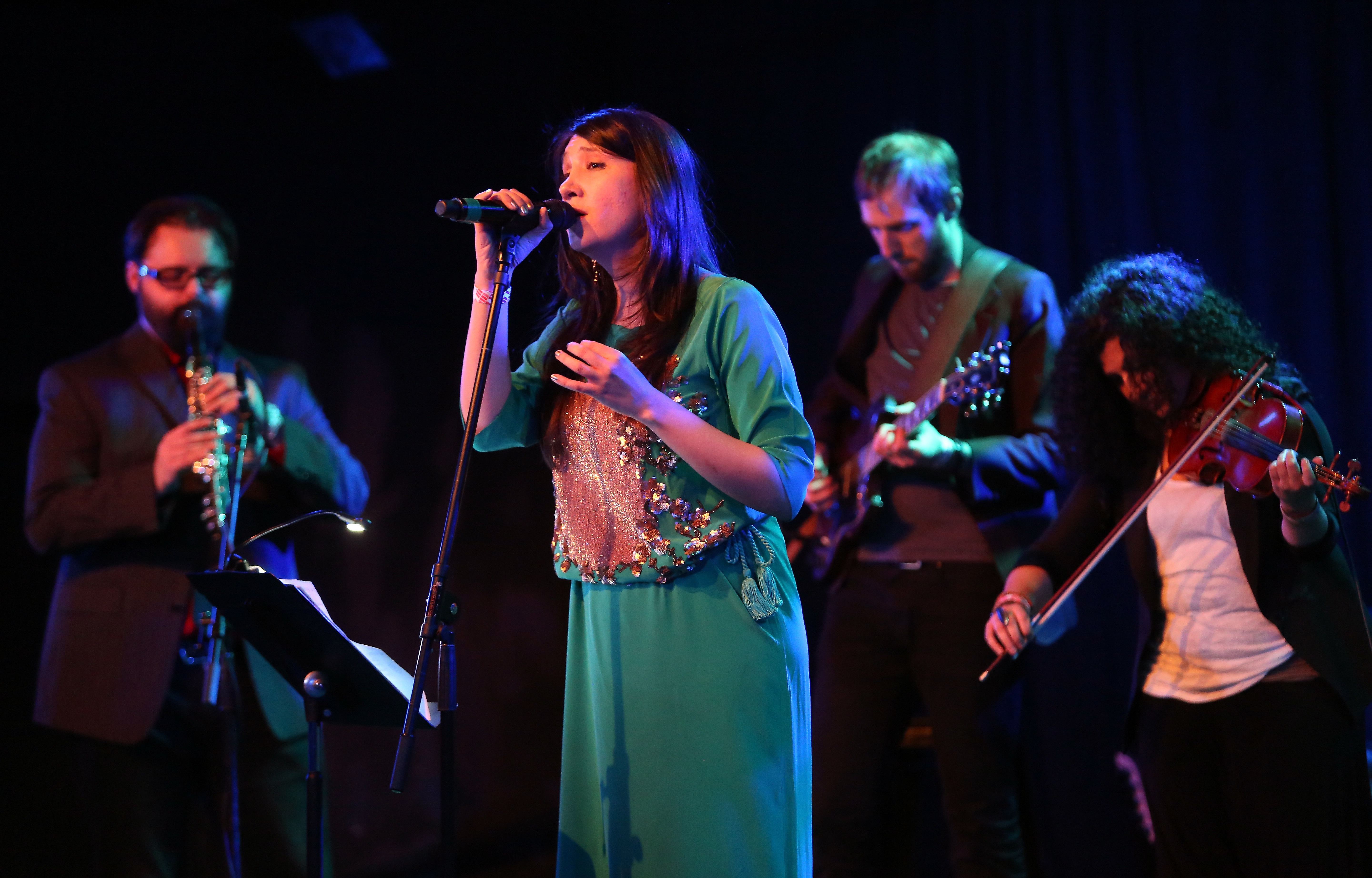 Winograd has no illusions about Sandaraa’s identity. “As a band we’re steeped in Western technique and theory,” Winograd states. “We have thought about the ideal show we’d like to present, about how folk songs can work when we play them as a group,” a band that includes a violinist steeped in Turkish tradition (Eylem Basaldi), respected jazz players (percussionist Richie Barshay, best known for his work with Herbie Hancock, and bassist David Lizmi), an accordionist-mainstay of the klezmer scene (Patrick Farrell), and an exploration-loving guitar and oud player, whose lines capture the plunk and grit of the Pashto rubab (Yoshie Fruchter).